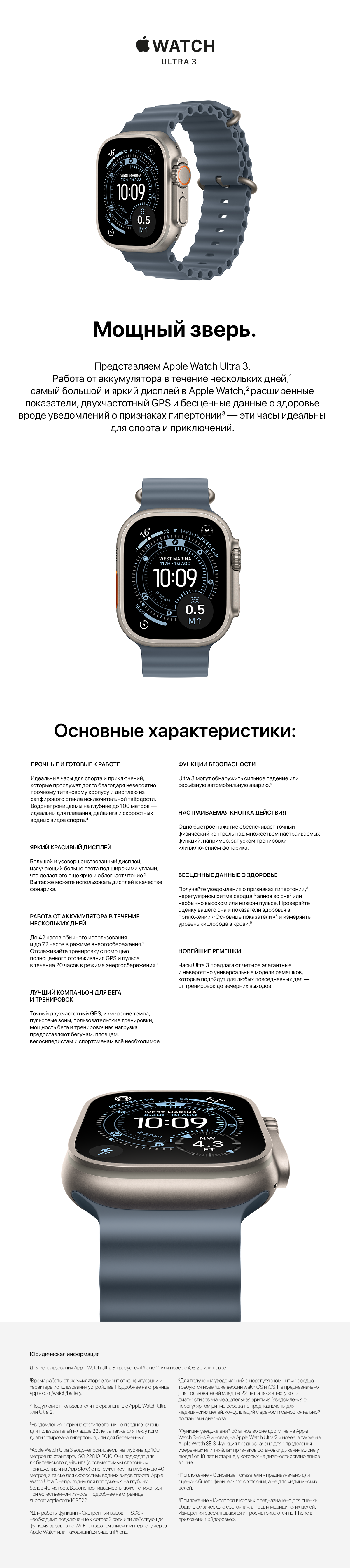 Характеристики Apple Watch Ultra 3 2025, 49mm, Natural Titanium Milanese Loop, Размер M (MEWY4)* Внимание! Все ноутбуки имеют русские буквы на клавиатуре и сопровождаются официальной гарантией от производителя! Перед установкой программного обеспечения просьба проверить совместимость с устройством, указанные на упаковке, документации или на веб-сайте. * Характеристики и комплектация товара могут изменяться производителем без уведомления. Теги: